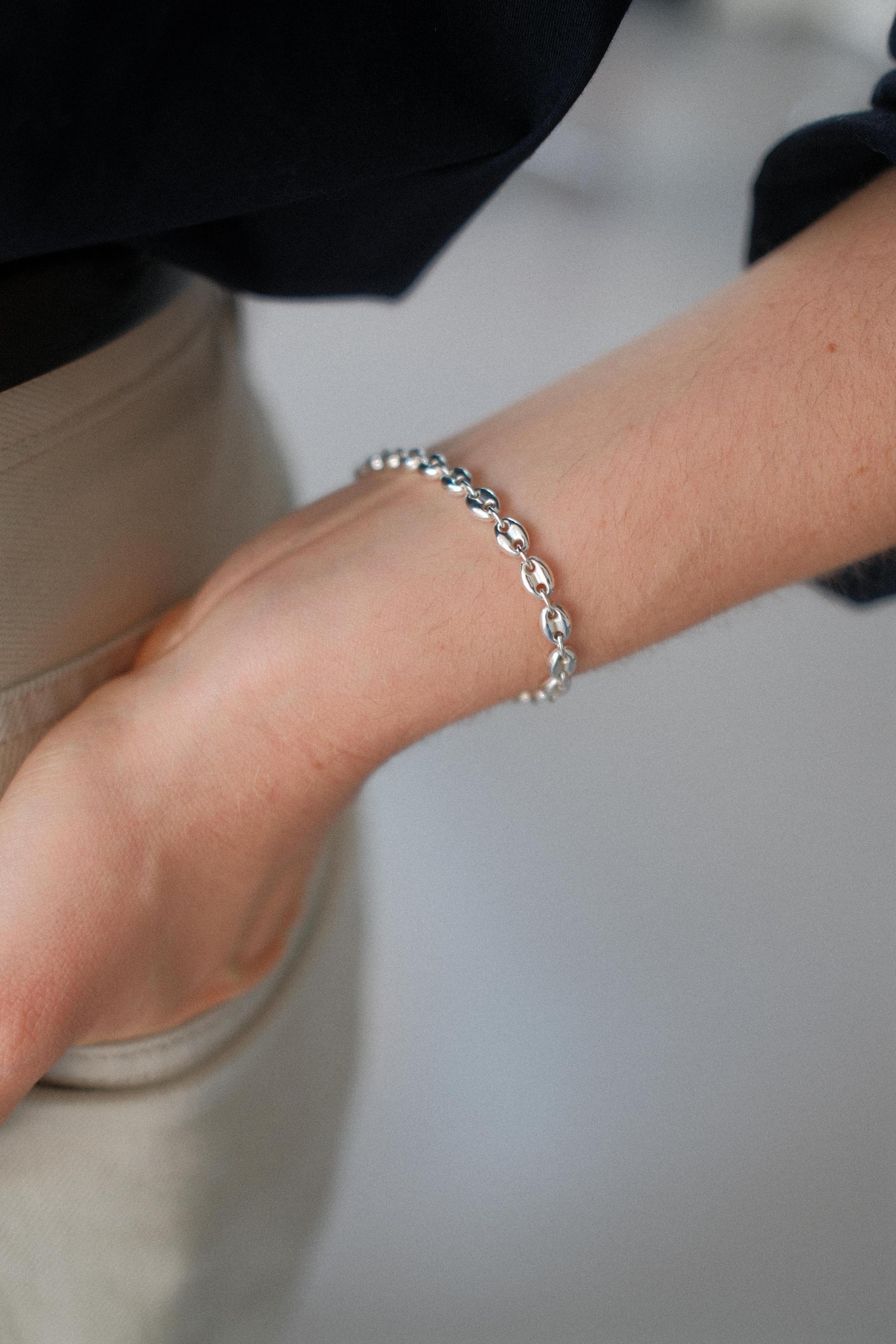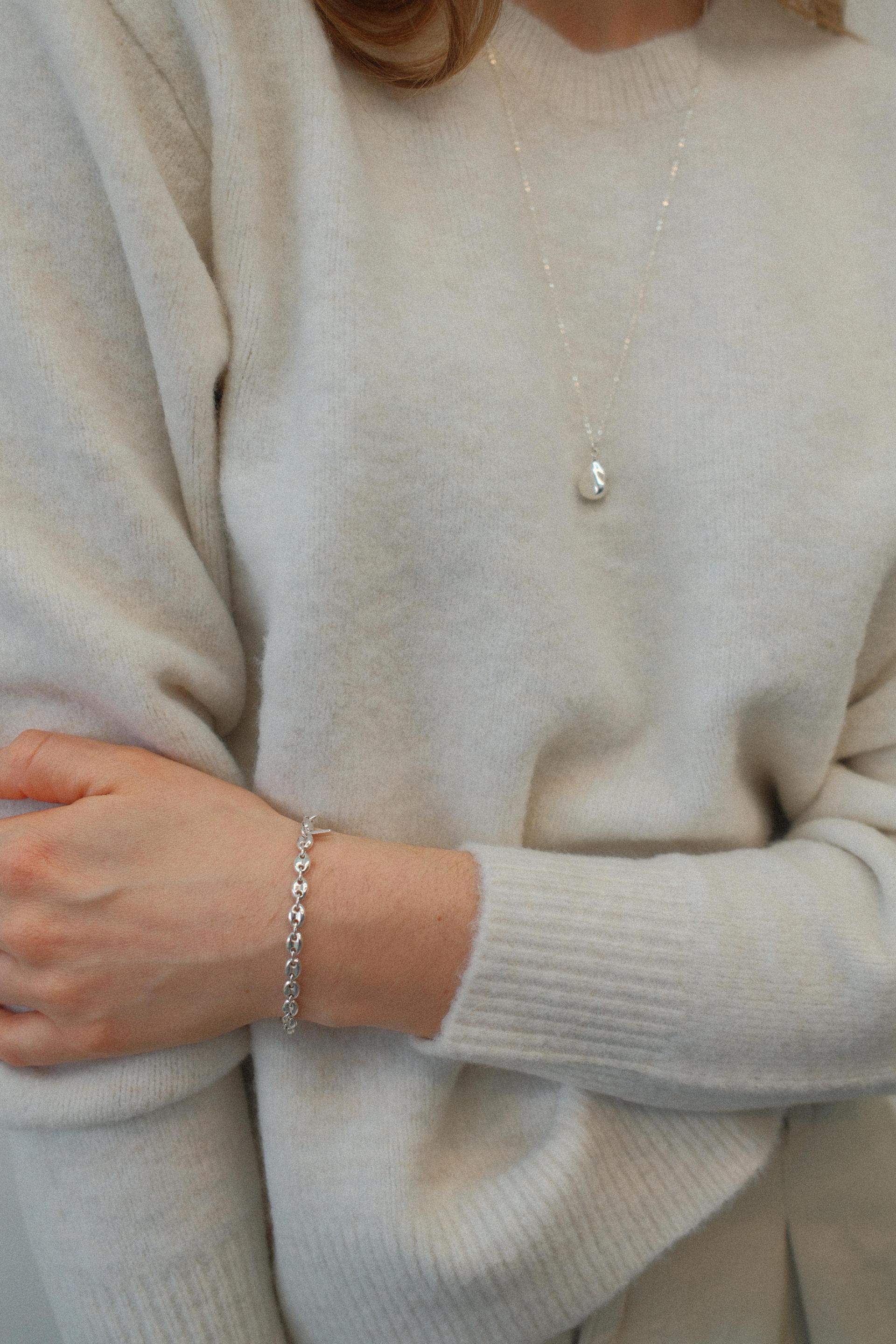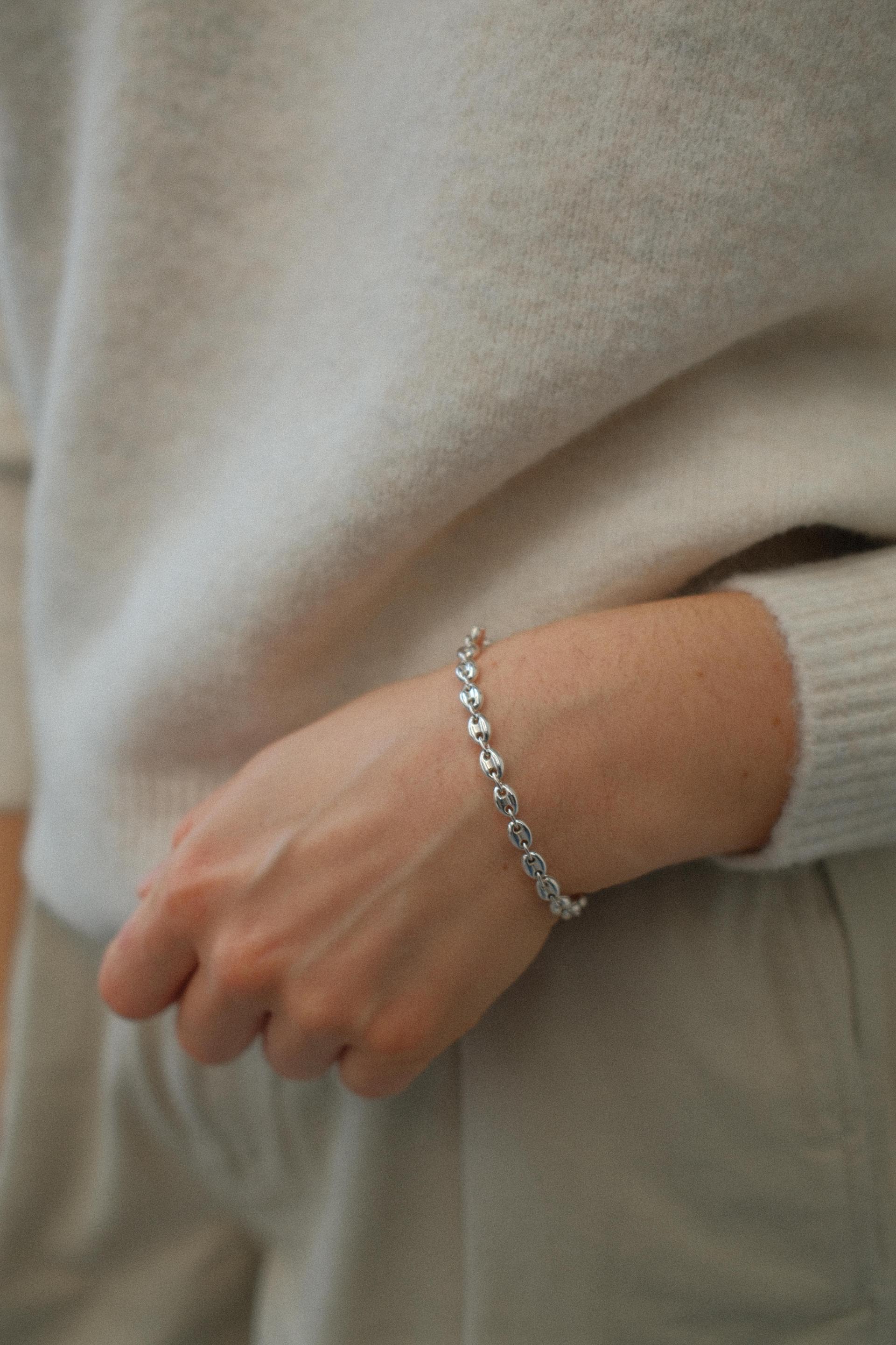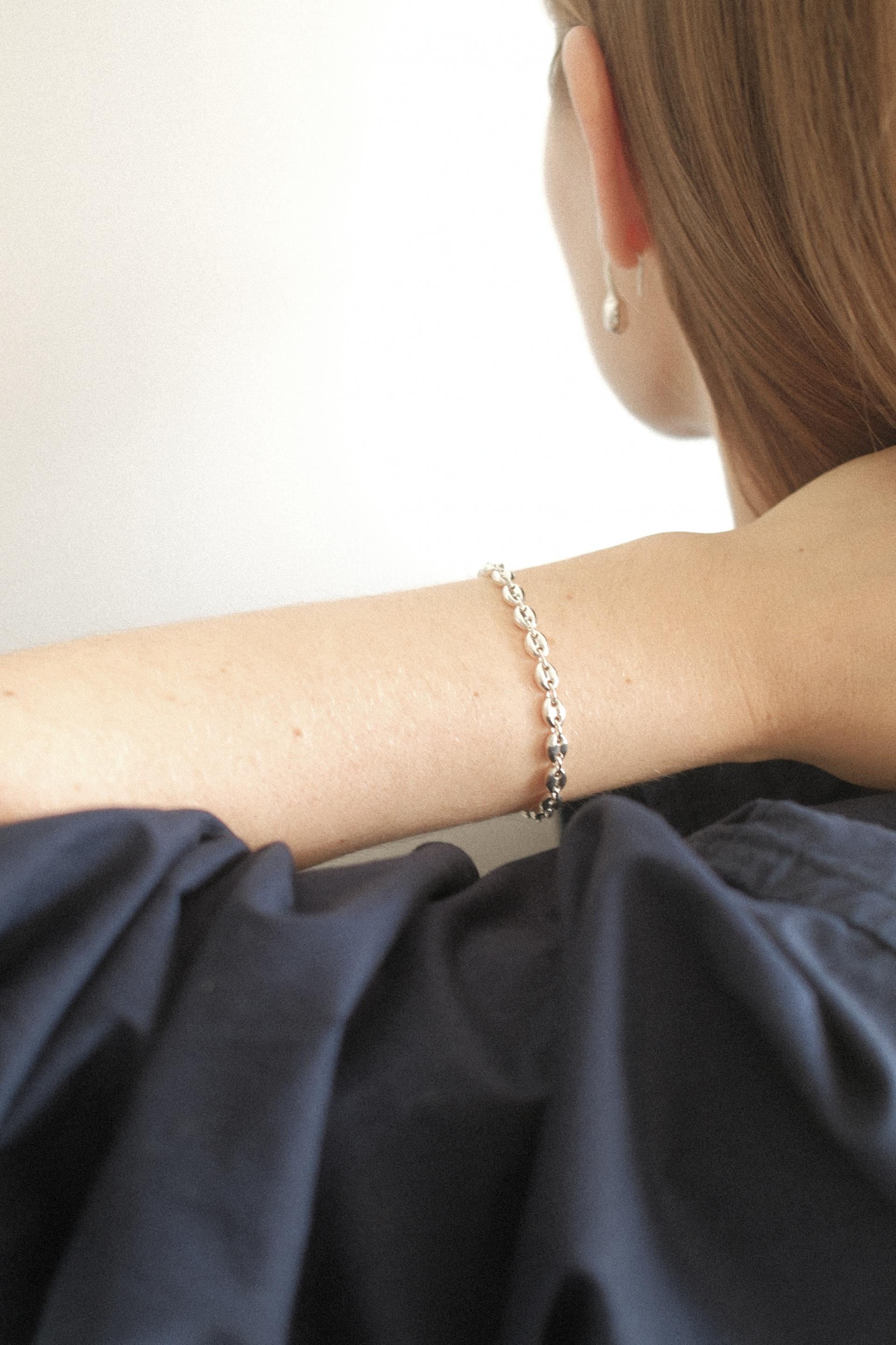 클래식하며 유행에 구애받지 않는 디자인의 체인으로 제작된 브레이슬릿입니다. 가볍고 편안한 착용감으로 다양한 룩에 쉽게 매칭됩니다.