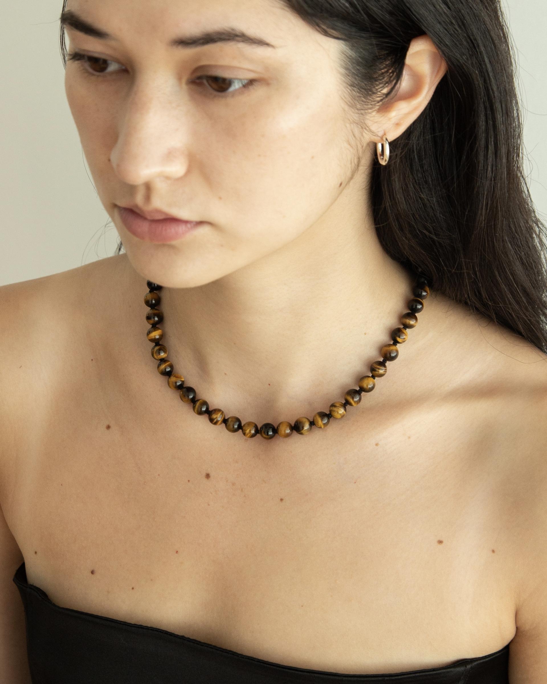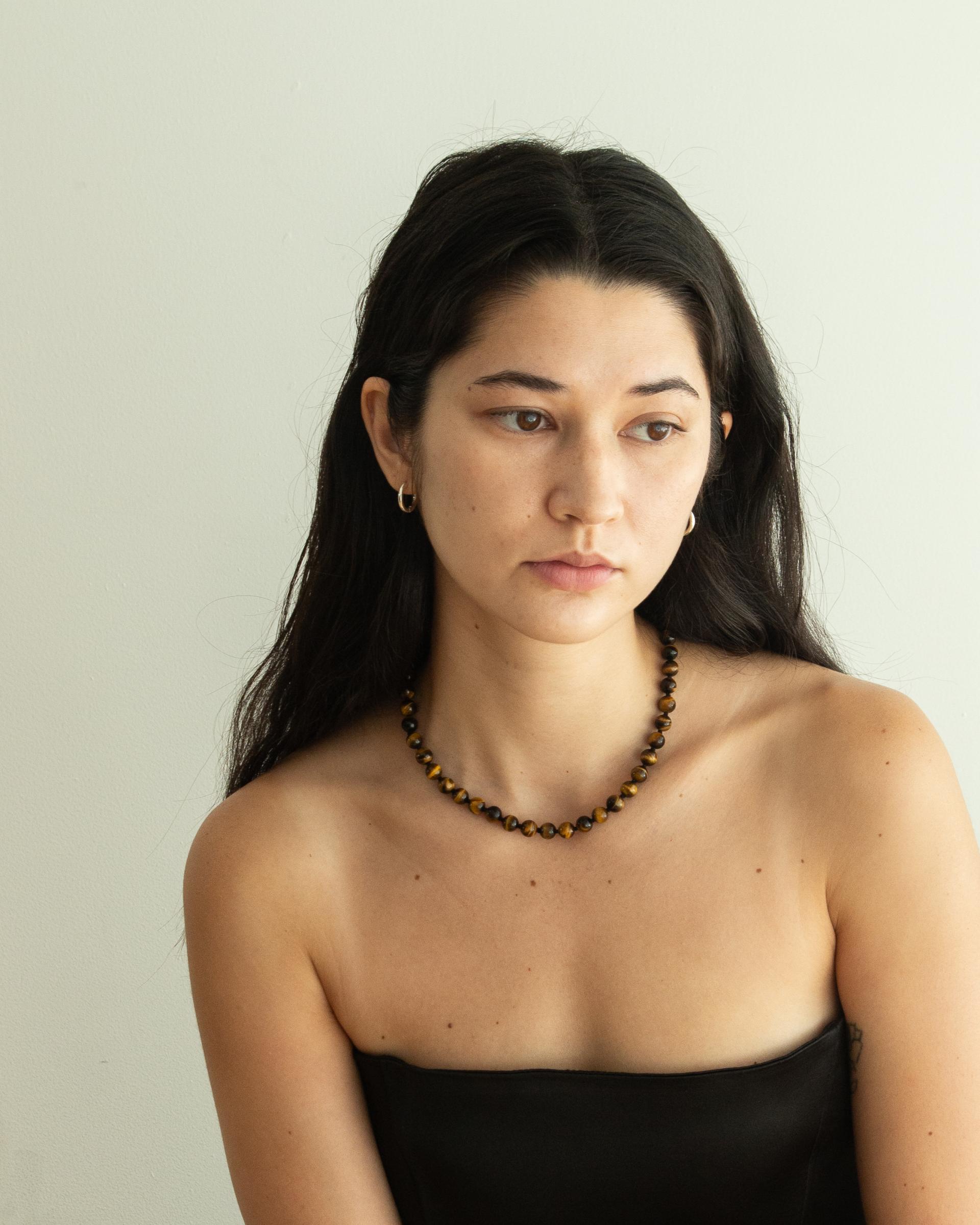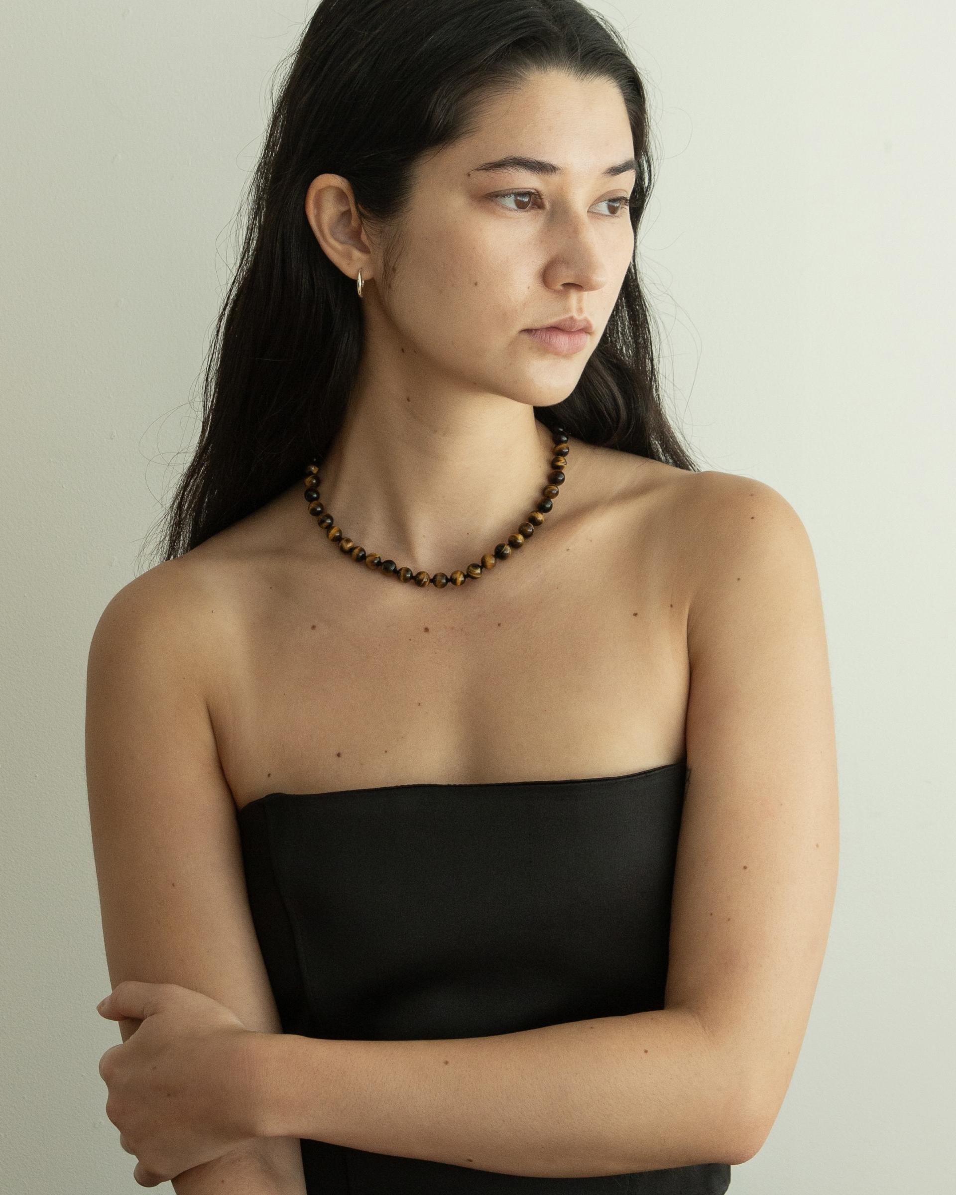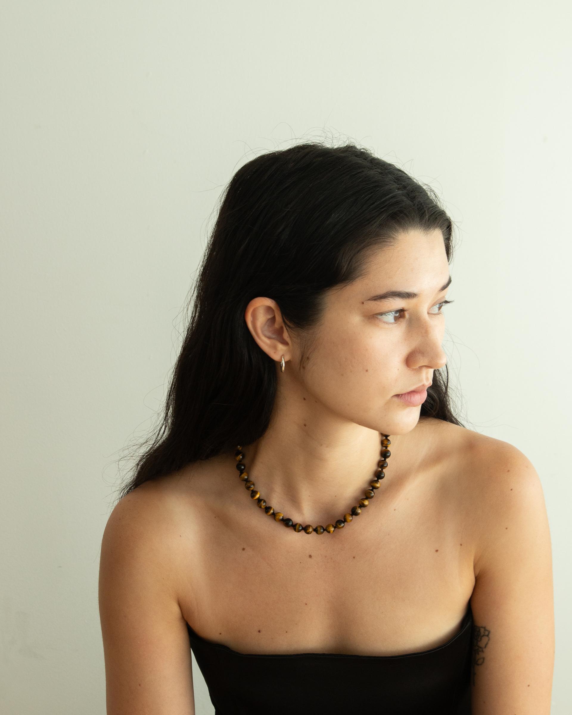 Ember Necklace는 따뜻한 깊이를 지닌 호안석으로 제작된 네크리스입니다. 자연이 빚어낸 독특한 패턴과 은은한 광택이 돋보이며, 차분하면서도 강렬한 존재감을 선사합니다. 실크사를 사용해 한 알 한 알 손으로 정교하게 매듭지어 제작되었으며, 실버로 제작된 클로징으로 마감해 섬세한 디테일을 더했습니다. 군더더기 없는 실루엣 속에서 자연스러운 조화를 이루며, 세련된 감각으로 다양한 스타일에 어우러지는 아이템입니다.