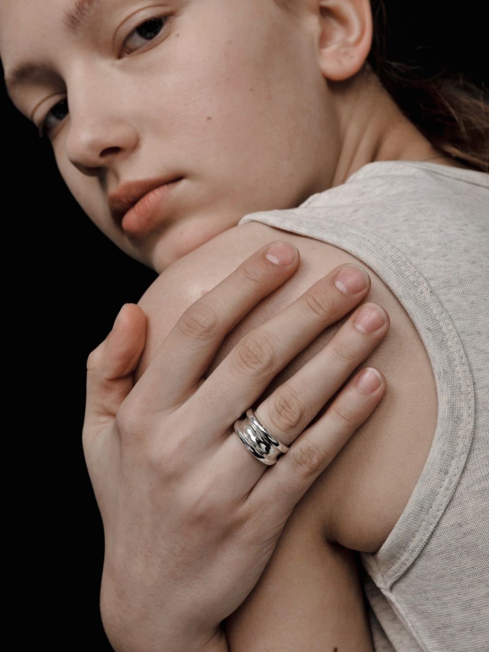 볼드하고 미니멀한 멋이 느껴지는 넓은 너비의 밴드 쉐입의 링입니다.