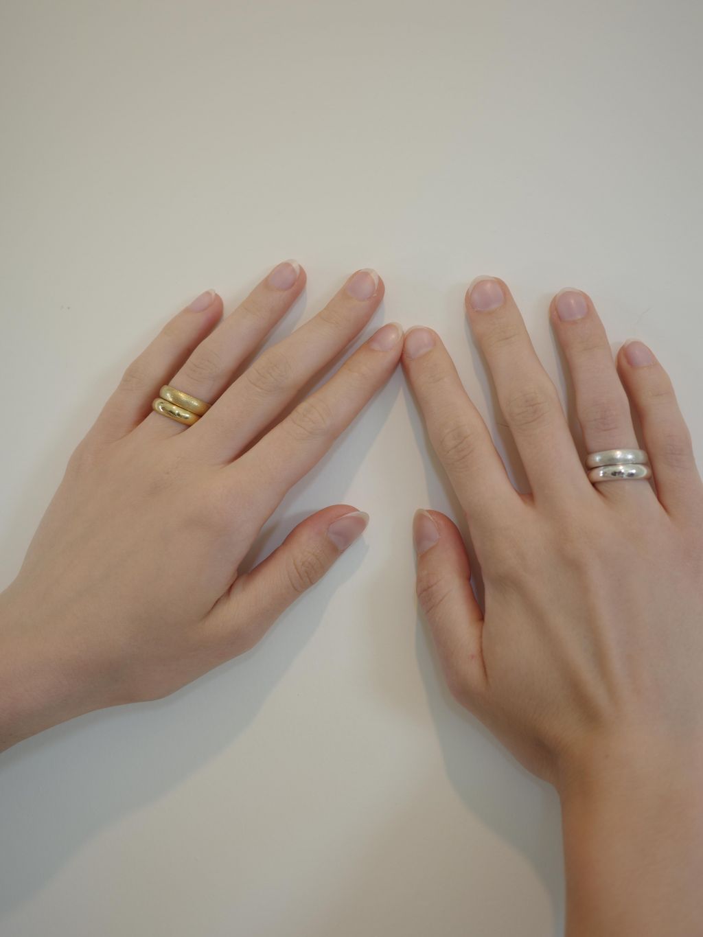 유광과 무광 두가지 텍스쳐로 선택 가능하며, 여러 개의 링을 레이어드해서 착용하여 다른 느낌을 줄 수 있습니다.
