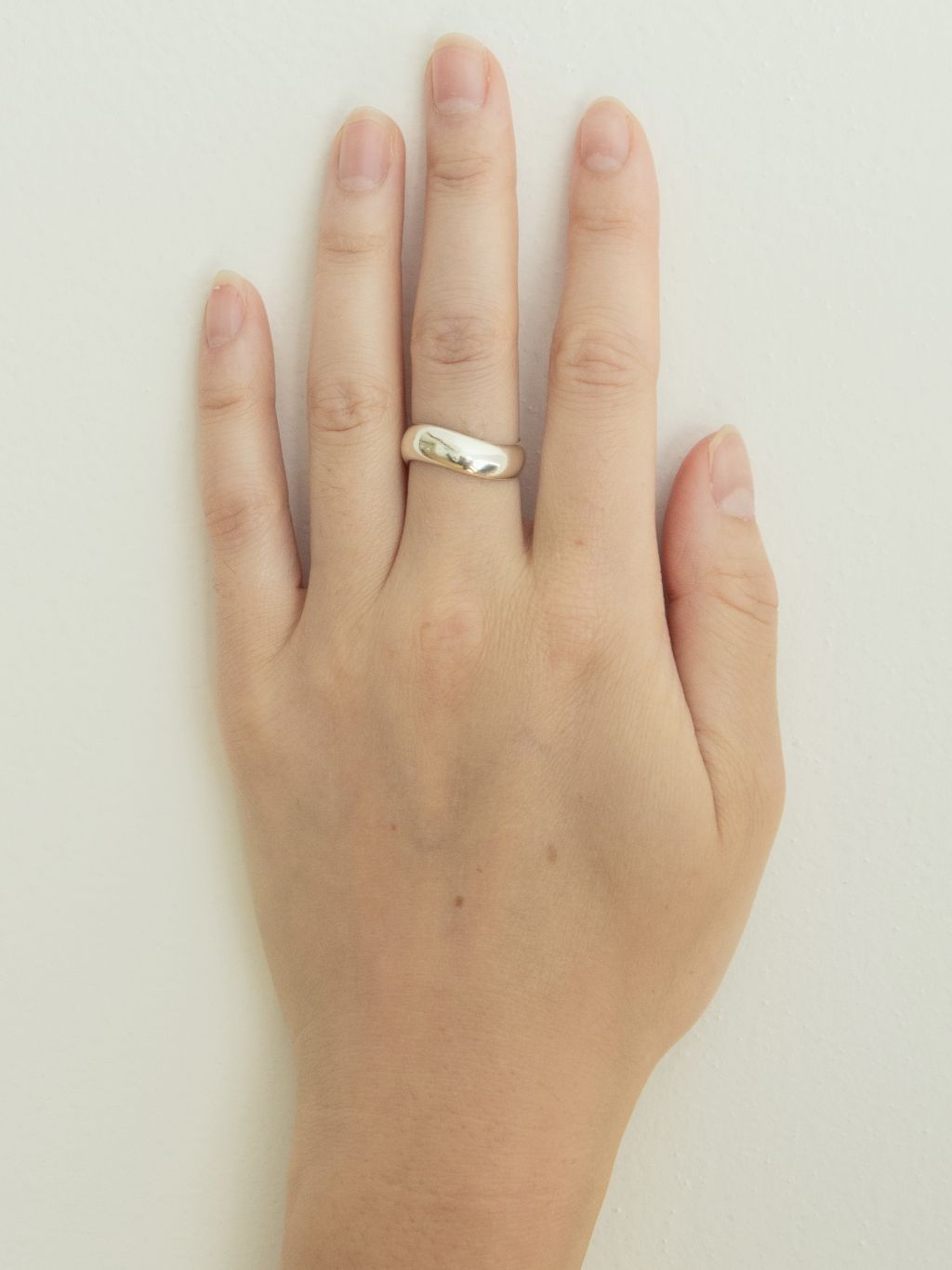 부드럽게 흐르는 곡선이 특징인 반지로, 군더더기 없는 실루엣 속에서 세련된 감각이 느껴지는 디자인입니다.