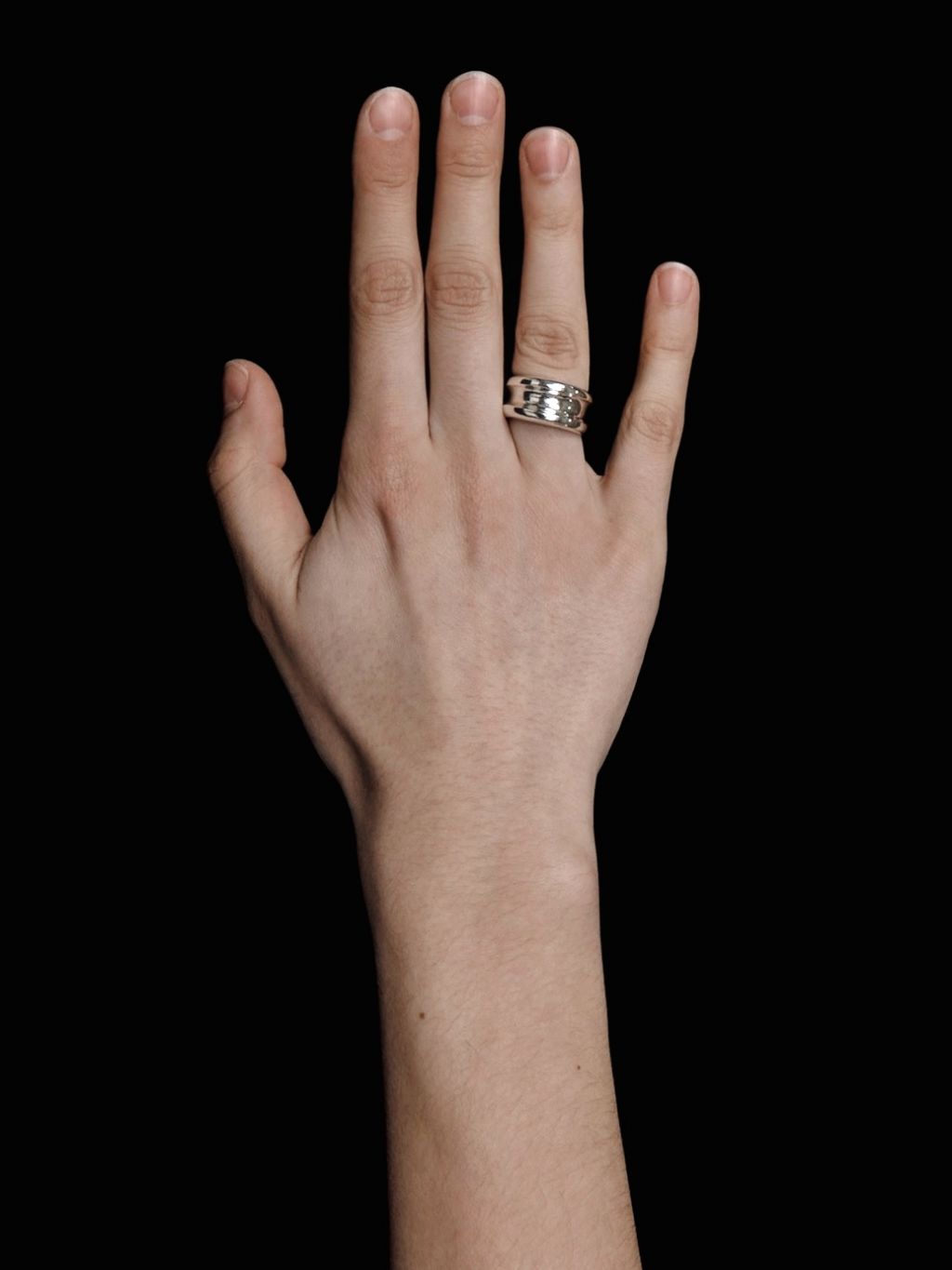 전체적으로는 밴드 쉐입이지만 부분적으로 안쪽으로 파여있는 디자인으로 인하여, 제품 자체의 무게감을 줄이고 디테일을 더했습니다.